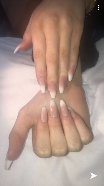 Attempting marbling... with some Rose gold chrome and pretty striping #acrylicnails #acrylics #ballerinanails #cnd #shellac #rosegold #marblenails #nailsofinstagram #nailsonfleek #instanails